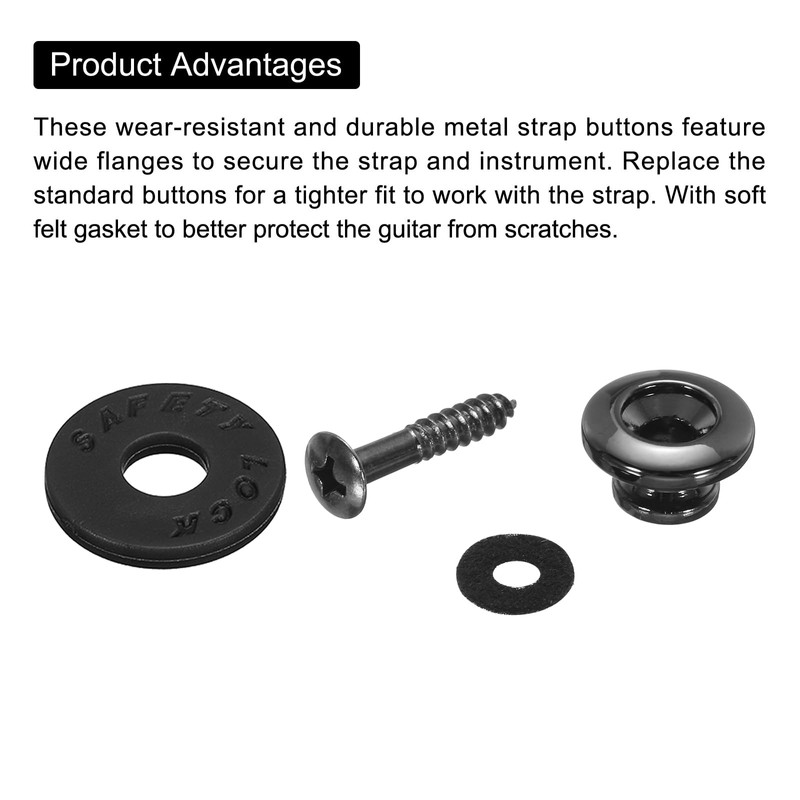 - These wear-resistant and durable metal strap buttons feature wide flanges to secure the strap and instrument. Replace the standard buttons for a tighter fit to work with the strap. With soft felt gasket to better protect the guitar from scratches.