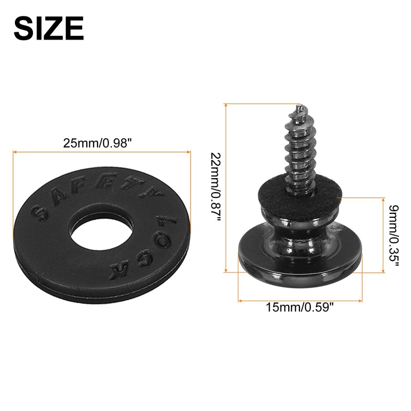 - Package Content: 4 PCS x Guitar Strap Button with Screw and Washer; Outer Diameter: 15mm/0.59 inch; Height: 9mm/0.35 inch; Screw Length: 22mm/ 0.87 inch; Black Washer Diameter: 25mm/0.98 inch
