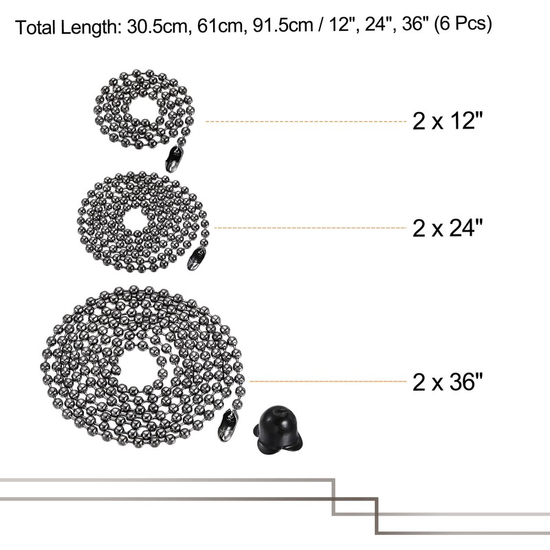 Package Content: 2 x 12" Pull Chain; 2 x 24" Pull Chain; 2 x 36" Pull Chain; 1 x Chain Pendant