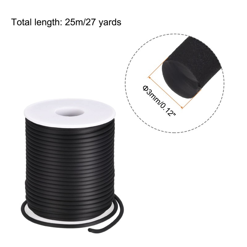 MECCANIXITY Rubber Cord 27 Yards 1/8" Dia Matte Black Solid Tubing for DIY Craft Making