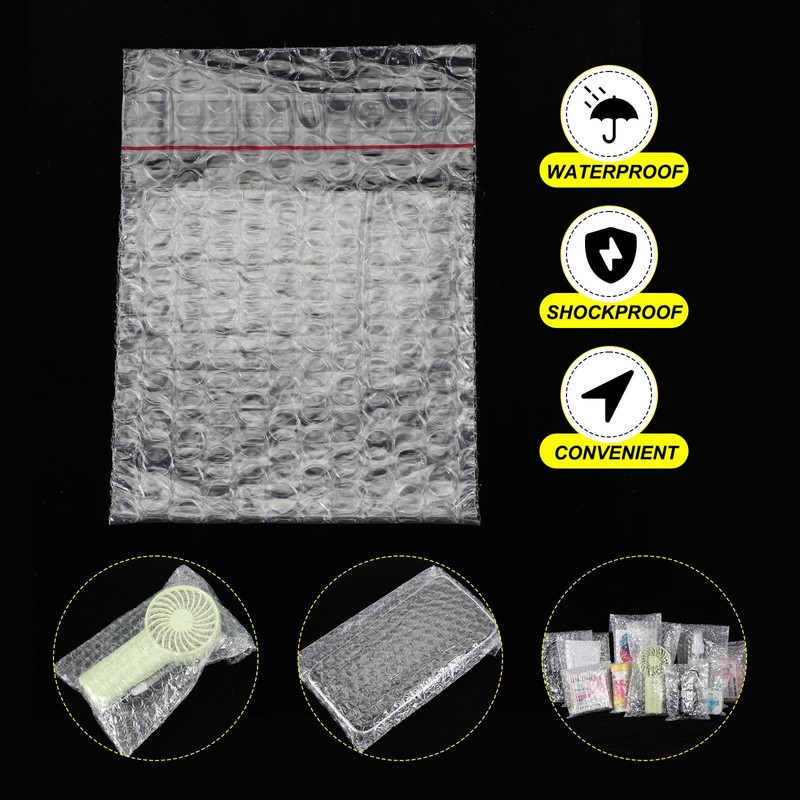 - Bubble pouch wrap bags are made of LDPE material, flexibility, chemical resistance, water resistance, lightweight, shock absorption, widely used in our daily life especially small business.