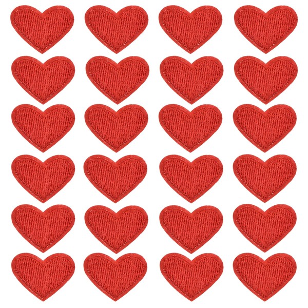MECCANIXITY Solid Bright Red Small Heart Patch Appliques Embroidered Patches Garment DIY Embellishments 2.6x2cm/1x0.8 Inch for Vest Clothes Backpacks Hats, DIY Crafts Caps, Pack of 24