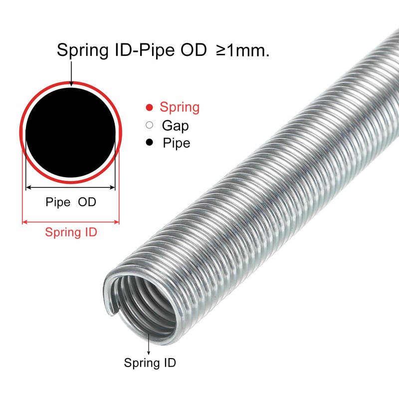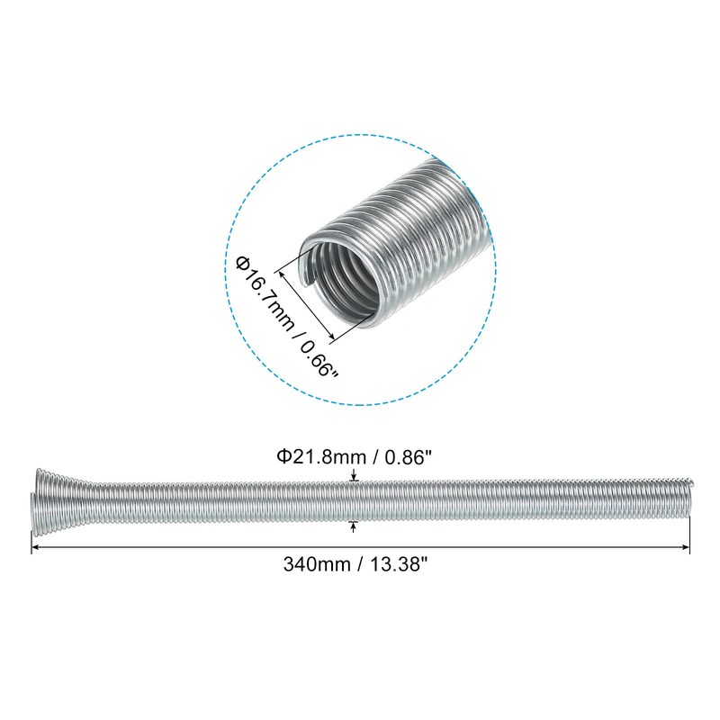 - Spring pipe bending tool,total Length:340mm/13.38 inch;Inside Diameter:16.7mm/0.66 inch;Outer Diameter:21.8mm/0.86 inch;Suit copper Pipe:16mm/ 5/8";Color:Silver white;Material:Steel;In the package of: 1 x Spring Tube Bender(outside-pipe use);