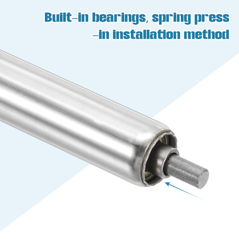 - Constructed of a stainless steel surface and galvanized end caps, rust-resistant, waterproof, smooth, and durable. Built-in bearings, spring press-in installation method.