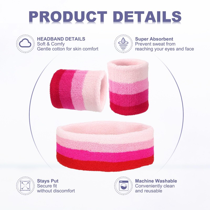 - The Dark Pink/Light Pink Headband Size is 18 x 5 cm / 7.09 x 1.97 inch (LxW); The Wristband Size is 8 x 8 cm / 3.15 x 3.15 inch (LxW); In the package of 1 pcs Headband and 2 pcs Wristband