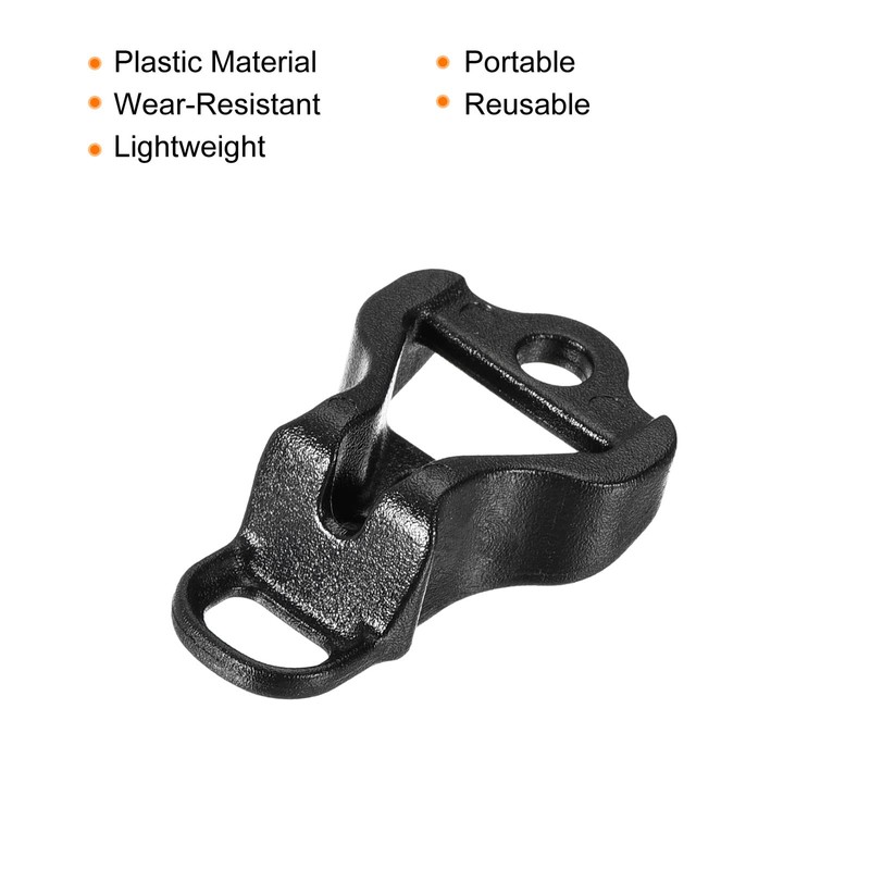 - Color: Black; Material: Plastic; Hole Diameter: 4mm/0.16"; Overall Size:29.5mmx18.5mmx10mm / 1.16"x0.73"x0.4"(L*W*H); Package Content: 20 x Tent Rope Buckles