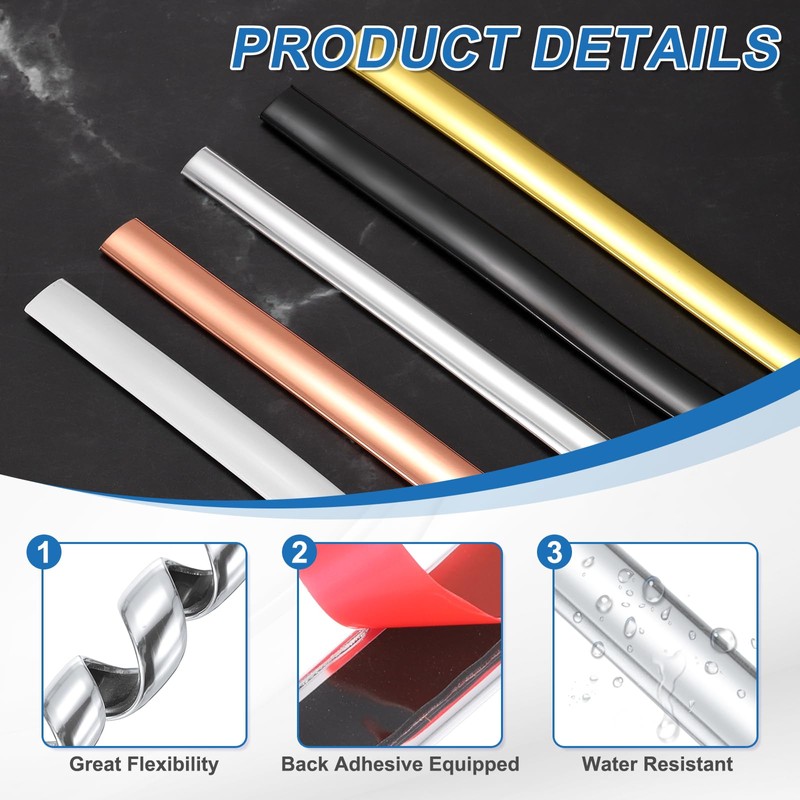 - Durable PVC Material: Made from elected PVC material, the strip is resistant to moisture, wear, and fading, ensuring long-term use. Self-Adhesive Design: Comes with a strong adhesive backing for quick and hassle-free installation, no additional glue or tools required. Versatile Application: Great for sealing gaps between walls, ceilings, countertops, and window frames, as well as for decorative purposes.