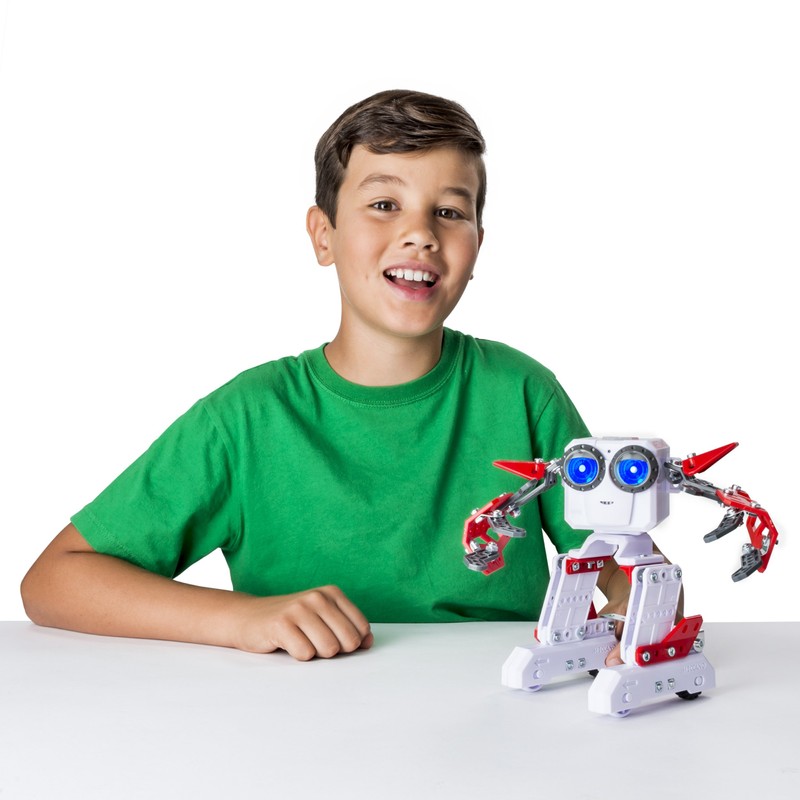 Now you can have your own robot friend with the Meccano Micronoid Socket. This robot kit comes with 123 pieces for building a small robot toy. Once you've got the battery-powered robot built, turn it on and start playing - with push button programming Micronoid can walk, turn, and smash through obstacles. There are three play modes, and you can program the robot to do different actions. In 8-Ball mode, ask the Micronoid a yes or no question, and the robot will respond with an answer, you might hear "Oh yeah!" or "No, no, no." In Dance mode, you can play music near the Micronoid to make the robot dance. If you leave the robot in this mode for too long, it will start dancing and playing its own music. And then in Autonomous mode, Socket has a mind of its own. The robot basically does whatever it wants, including moving around, whistling, laughing, passing gas, and more. If you've got another Micronoid nearby, (each sold separately), the two may start interacting with each other and dancing to a synchronized routine. You can also build custom walking and turning sequences for the robot by pressing the record button on top of its head and then pushing the arrow buttons in the sequence you want. You can also program the robot by twisting its head left or right. Then press the play button to make the robot perform your programmed sequence. If you speak to the robot while recording, it will record your voice and repeat what you say in its robot voice when the play button is pressed. Building the robot will certainly be fun for kids who are into construction toys and robotics, but they'll also like being able to interact with the robot after it's built. This toy robot has a silly personality that kids will like bringing out through the play, and they can even add to the silly sounds and phrases with the record feature. Micronoids are responsive to music and your voice, making it easy to play with and program. Micronoids make a great gift for kids ages 8 and up, who are into STEM and an alternative to more expensive programmable robots.