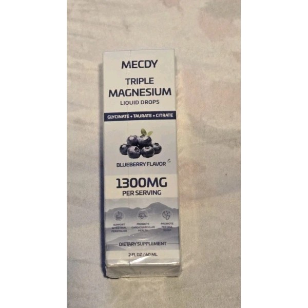 Mecdy Triple Magnesium Liquid Drops 1300mg per Serving Blueberry Flavor Diet Sup