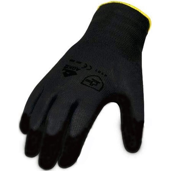 Fine knit gloves PU coated black standard EN 388 material 100% polyamide colour black size 8 polyurethane partially coated fit like a second skin secure grip good tactile sensation liquid-repellent washable knitted cuff areas of application: electronics, clean room, assembly, high-tech and pharmaceutical industry, glass and metal processing
