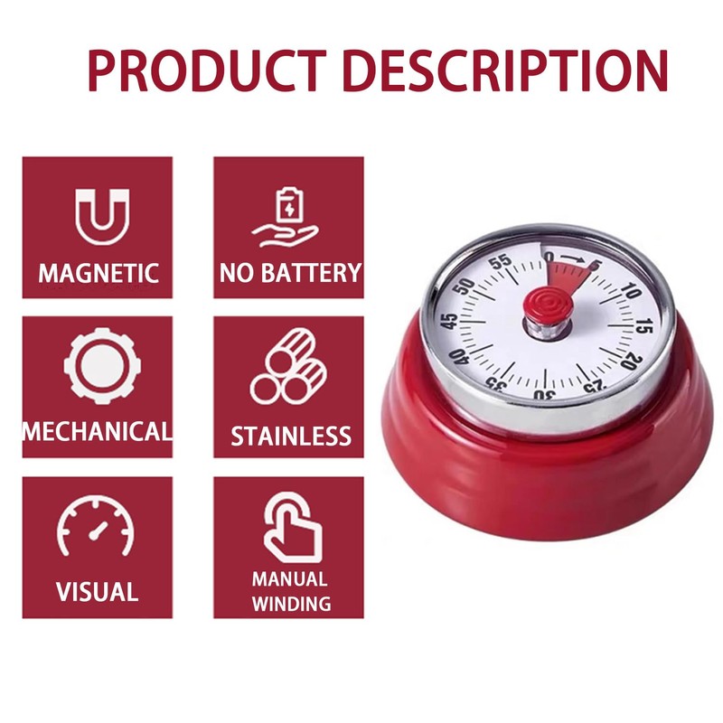 - Battery-Free Mechanical Design: Simply wind it clockwise a circle then turn back to set your countdown time. The reliable clockwork mechanism ensures energy-efficient, long-lasting use without the hassle of battery replacements or charging. (Avoid turning counterclockwise from 0 to prevent damage)