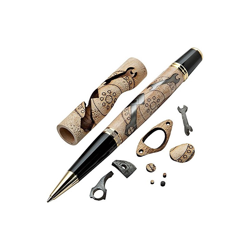 Create a pen for your favorite mechanic with this challenging but fun 10-piece, laser-cut Mechanic Inlay Pen Blank! The perfect gift for the mechanic in your life. The kit is composed of 10 pieces of koa, quilted maple, and blackwood, and are inlaid into position to become a seamless part of the finished pen. Designed for Manhattan Chrome, Manhattan Gold, and Elegant Manhattan style pen kits only, sold separately. Assembly requires cyanoacrylate (CA) glue. For best results, use sharp tools. Features: Fits Manhattan Pen Hardware Kits (Sold Separately) Difficulty Level (1 Easy - 5 Hard): 3