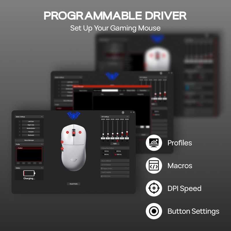 • 【Customizable DPI with Six Adjustment Levels】 Take control of your gameplay with six levels of DPI adjustment. With a simple press of the forward button and the scroll wheel, you can switch between DPI settings from 400 to 26,000, tailoring the sensitivity to your preferences. Each DPI level is indicated by the receiver light, which cycles through various colors for easy monitoring. Whether you need precision for aiming or speed for quick maneuvers, the SC800 ensures your settings are always at your fingertips.