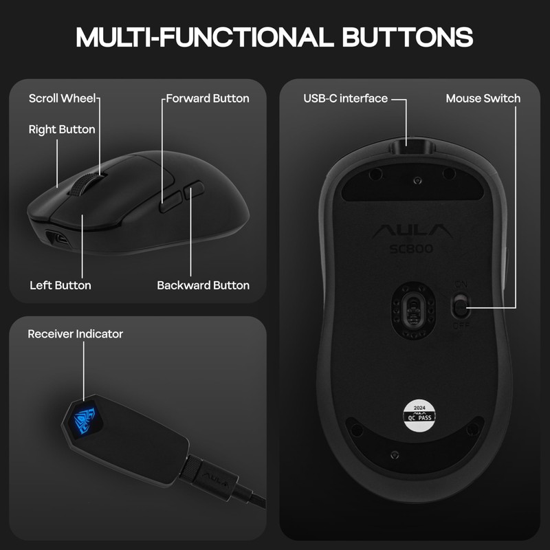 • 【Dual-Mode Connectivity for Versatile Use】 The AULA SC800 features dual-mode connectivity, allowing you to switch between USB-C wired and 2.4GHz wireless modes seamlessly. Whether you’re at your desk or gaming on the go, you can enjoy stable and reliable connections in both wired and wireless modes. The smooth transition between modes makes it perfect for users who prefer flexibility, offering you the best of both worlds without sacrificing performance or convenience.