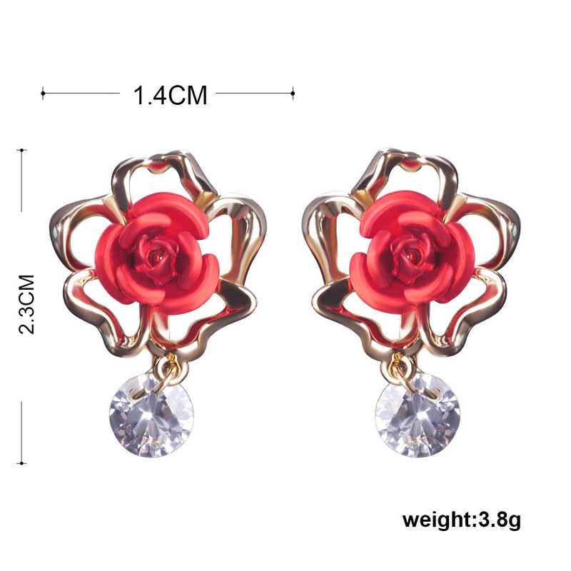 - Design: Rose motif earrings that symbolize love. Catch type (pinched) for both ears, no need for ear holes