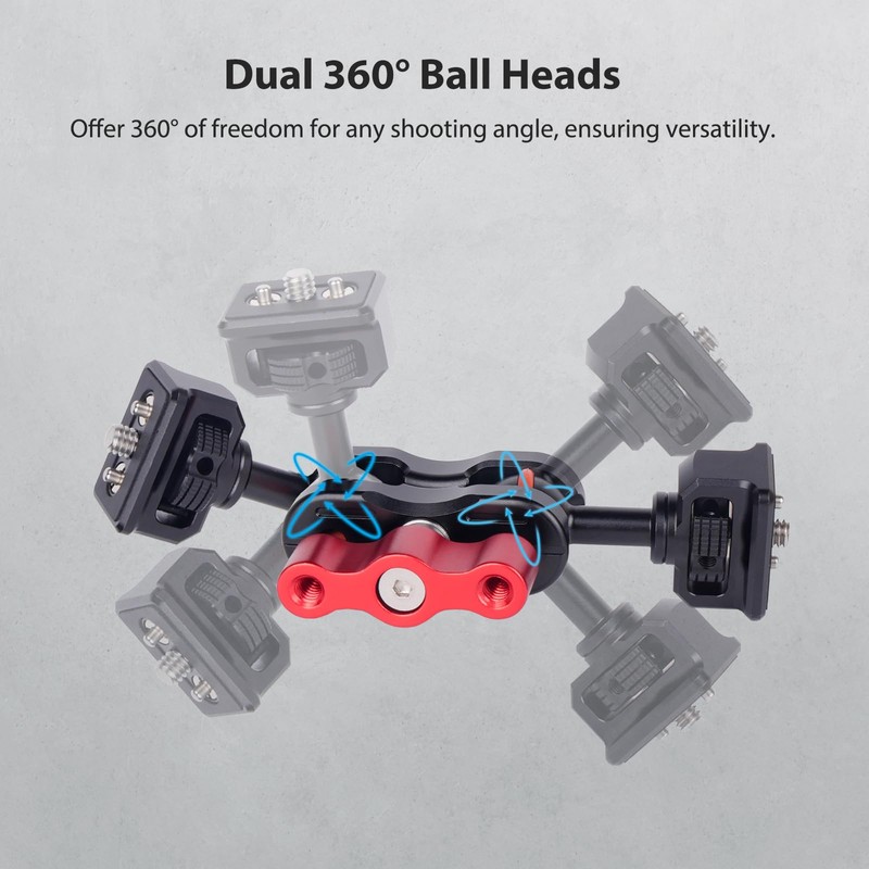 - Flexible Dual Ball Head Design: The Mechrig Magic Arm boasts dual universal ball heads with 360° rotation, enabling flexible positioning of your gear at any angle. Perfect for monitors, LED lights, microphones, and more, this design allows for quick adjustments to suit various shooting scenarios, from professional studio shoots to outdoor vlogs and live streams
