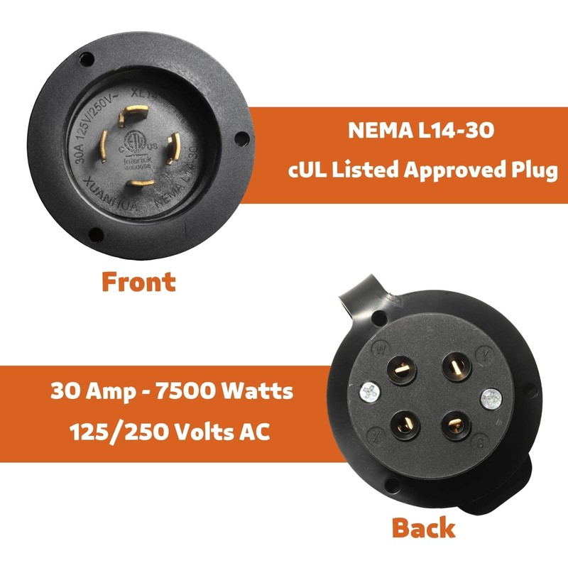 • Tough and Strength: Made of high quality extra thick black nylon plastic Body and Premium Copper, heavy duty L14-30p flanged Inlet is weather-resistance and perfect for outdoor