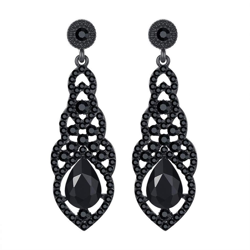 mecresh Black Teardrop Earrings for Women Crystal Dangle Drop Earrings