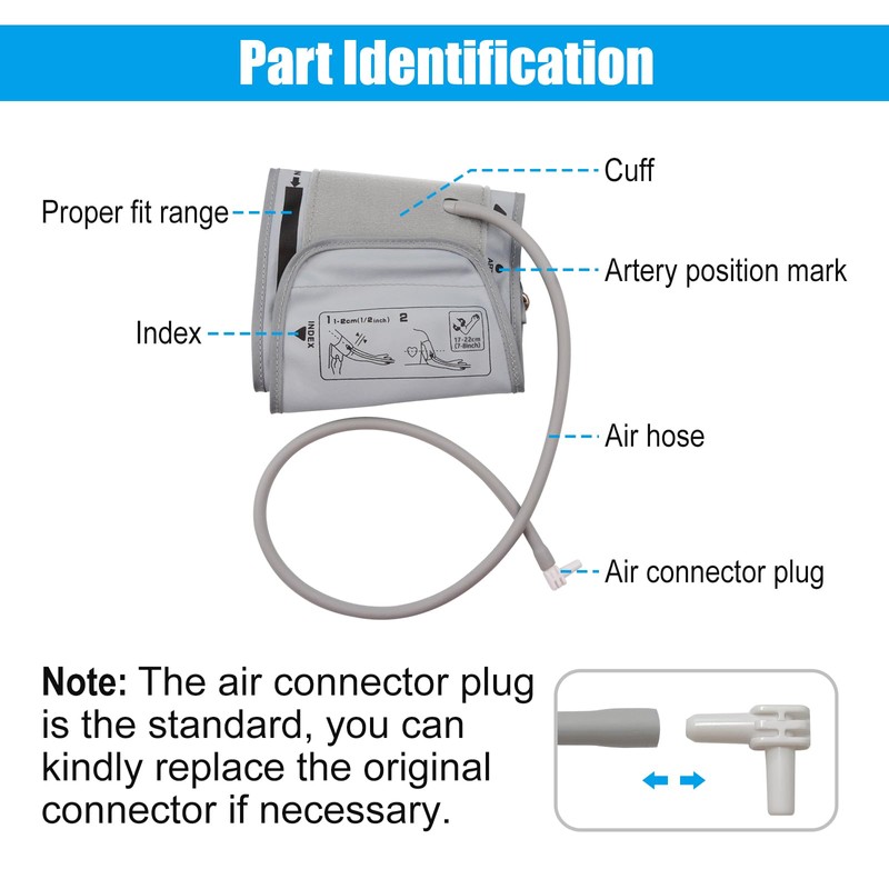 - Tapered BP Cuff Design for Better Arm Fit:The design of BP cuff conforms to the natural curve of the arm and ensures a better fit and ergonomics when the BP replacement arm sleeve is worn, for more comfortable use.