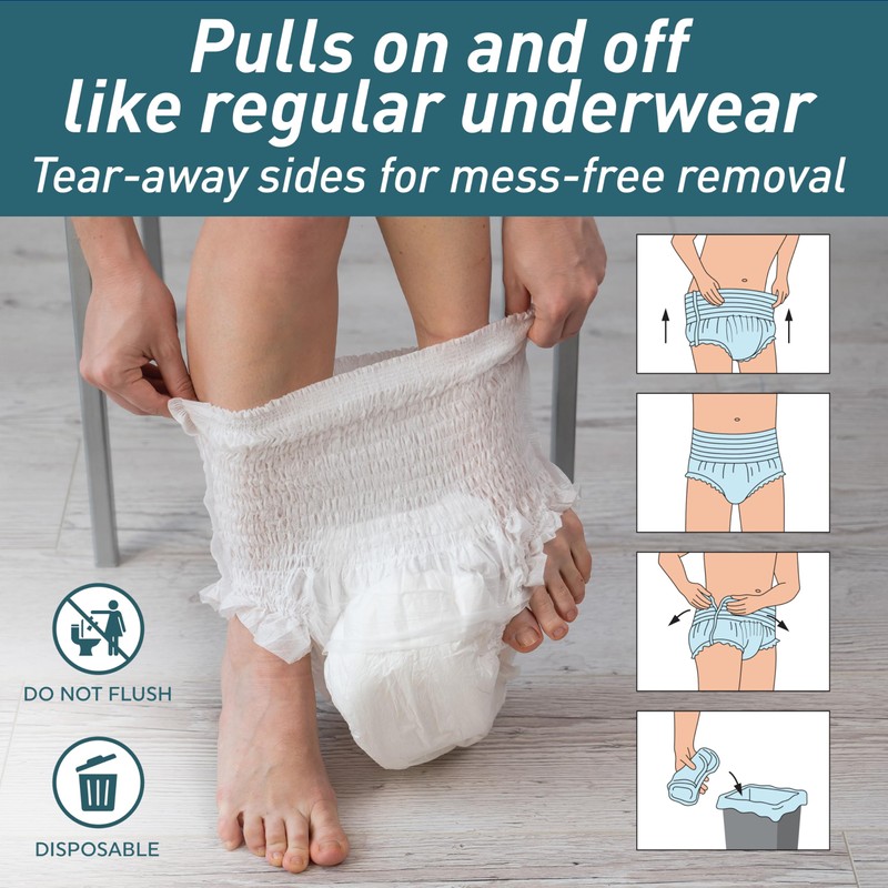 - Easy Tear-Away Sides for Hassle-Free Changes: Pull-on style underwear that slides on easily like regular underwear, with tearable side seams for quick and hygienic removal—perfect for caregivers or self-use.