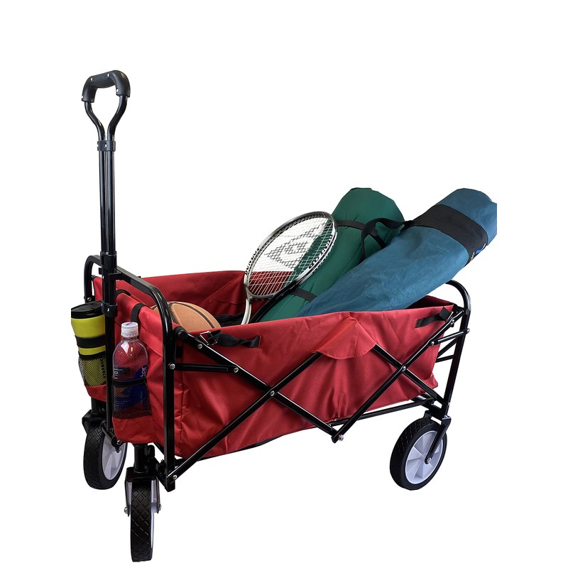 - FUNCTIONALITY: This wagon features an adjustable handle for effortless transport and 2 mesh cup holders keep your beverages secure