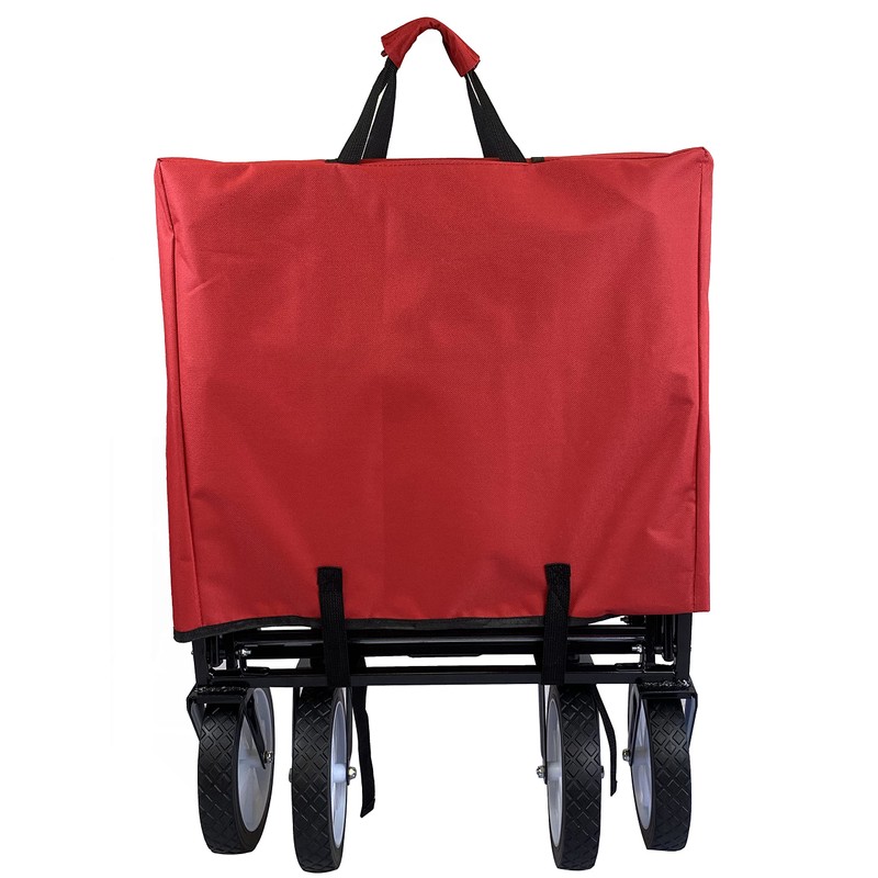 - CONVENIENT COMPACT STORAGE: Wagon folds to only 8" thick! Folded size approx. 29.5" x 20" x 8" and includes a carry case