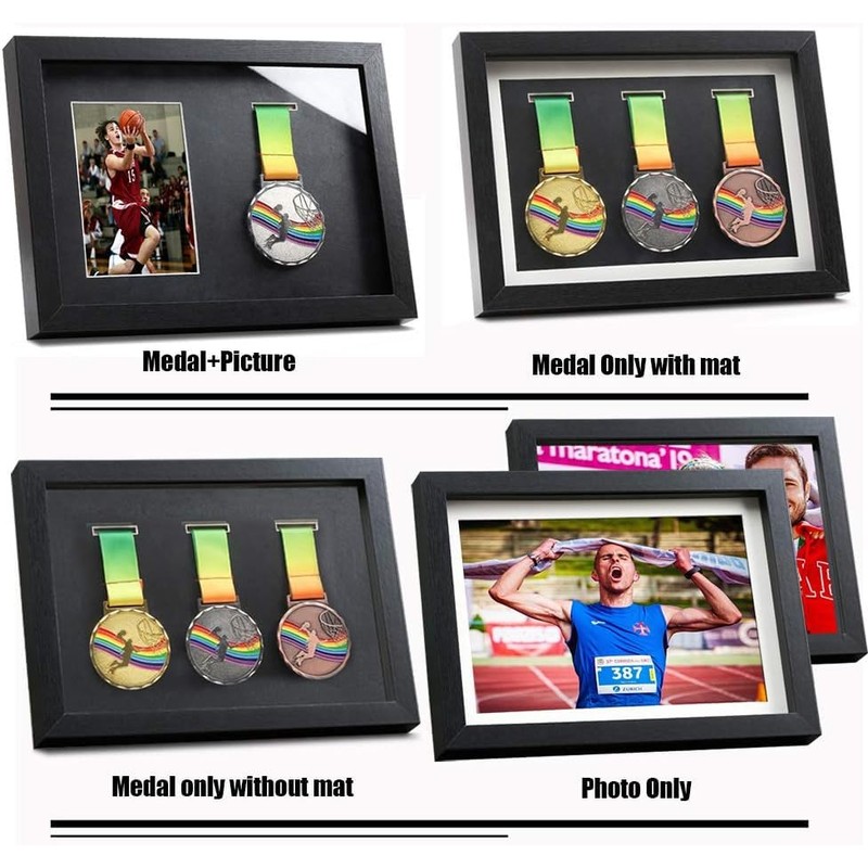 - Multi use: three kinds of mat card, you could display medal with photo,medal only,and photo only,it is also available to use like a regular shadow box to display small objects, items, pictures, trinkets and artworks.