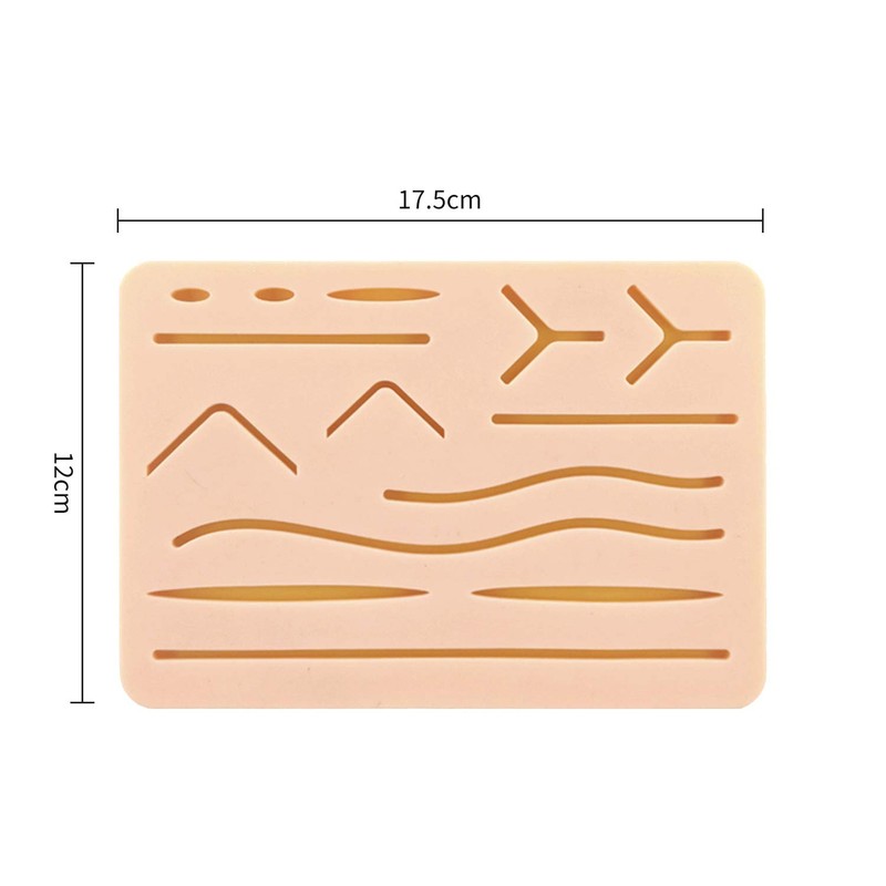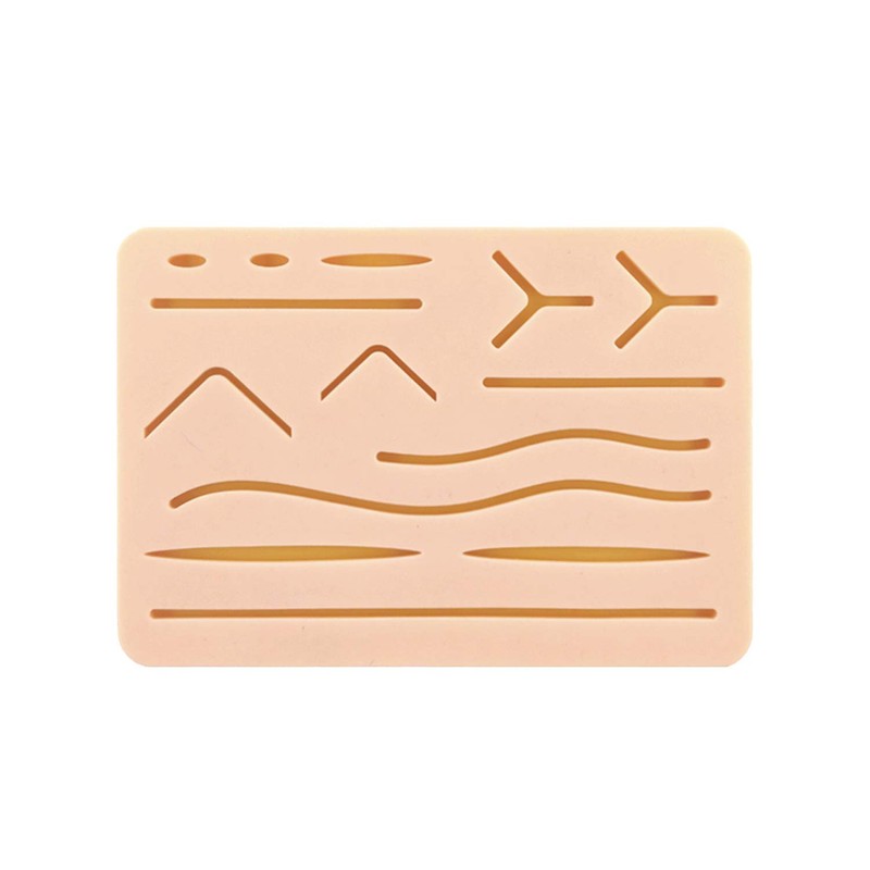 This sewing pad is designed with 3 layers to resemble human skin, subcutaneous and muscles. The pads are designed with different sizes of pre-cut scratches and are intended for first class sewing techniques. Users can develop their experience by practicing sewing with pads.