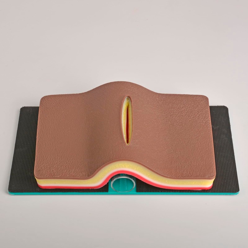 - The Skin sutrue pad is upgraded to include 5 layers of skin, including epidermis, dermis, subcutaneous fat, fascia, muscle. This design allows you to practice many types of suture techniques such as subcutaneous suture, deep suture.