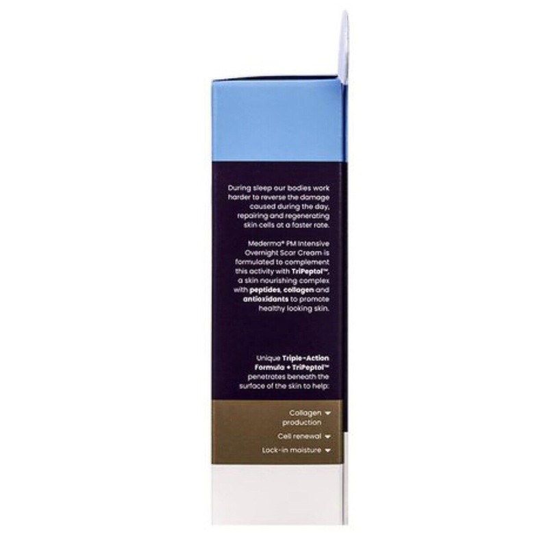 During sleep our bodies work harder to help reverse the damage caused during the day, repairing and regenerating skin cells faster. Mederma PM Intensive Overnight Scar Cream is formulated to complement this activity with Tripeptol, a skin nourishing complex with peptides, collagen, and antioxidants to promote healthy looking skin. Plus, the non-greasy formula can be used on sensitive skin. Clinically shown to visibly reduce the overall appearance of scars, Mederma PM Intensive Overnight Scar Cream is from the #1 doctor and pharmacist recommended brand for scar treatment.