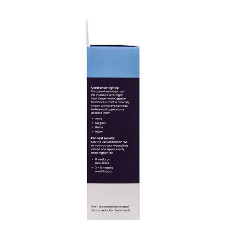 Mederma PM Intensive Overnight Scar Cream should be evenly applied and gently massaged into the scar until fully absorbed once nightly for 8 weeks on newer scars and 3-6 months on older scars. Begin using Mederma PM as soon as new skin has formed, typically two or more weeks after the injury or surgery. Make sure the scab has come off naturally and any stitches have been removed. On older scars, you may start using Mederma immediately. Do not apply to broken skin