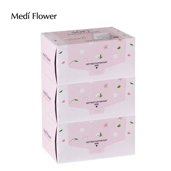 Medi Flower Soft Multi -Cotton 5 -layer Pupper Cosmetics 80 Besion X3 / 메디플라워 소프트 멀티 코튼 5겹 퍼프 화장솜 80매x3