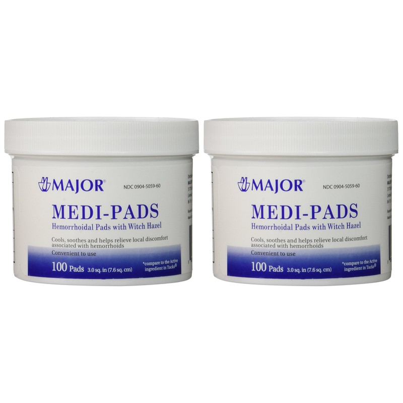 Medi-Pads Maximum Strength With Witch Hazel Hemorrhoidal Hygienic Cleansing Pads 100 Ct Jar Compare to Tucks Pack of 2 Jars Total 200 Pads (2)