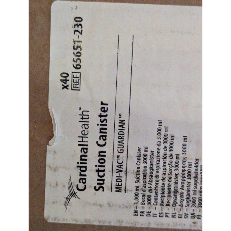 Medi-Vac Brand New Medi-Vac 65651-230 Guardian Suction Canister Size 3000cc W/Sealing Lid