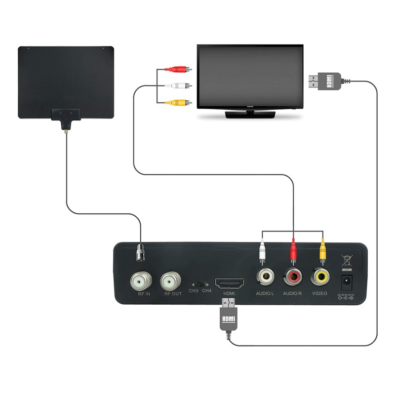 - HDMI 1080P Output / Composite Out / Coaxial Output, Closed Caption, Auto Tuning, Timing Start Up & Shut Down.