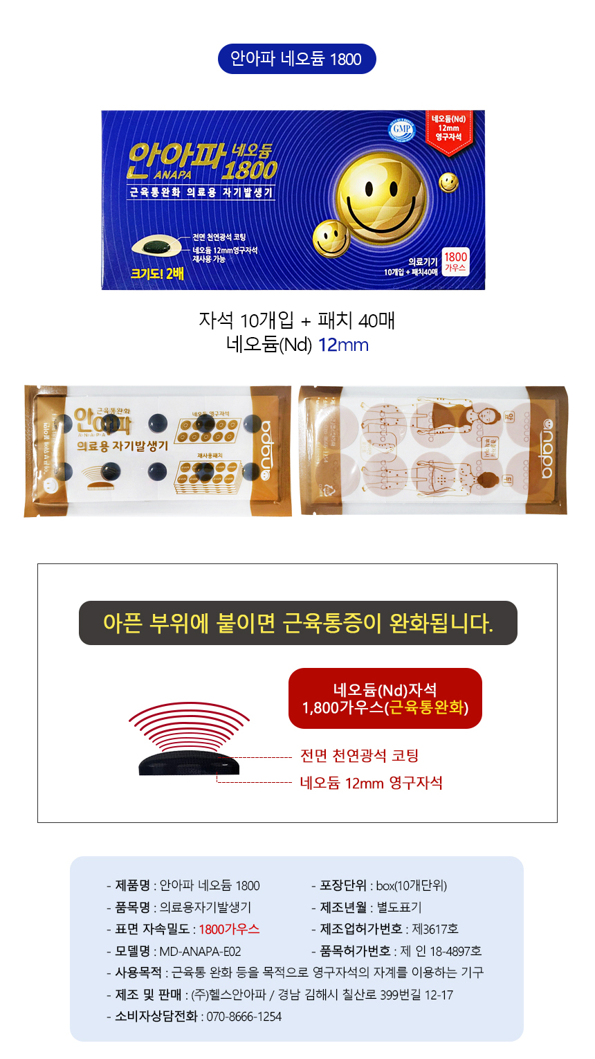 Medical magnetic generator Anpa Neodymium 1800 Gauss 1 unit Muscle pain / 의료용 자기발생기 안아파 네오듐 1800가우스 1개 근육통