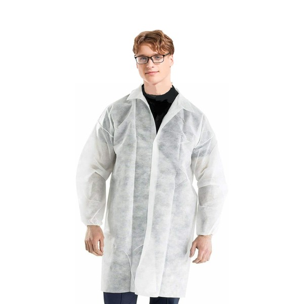 - HIGHLY ECONOMICAL: Our disposable SPP coats provide cost-effective care. Wear once and throw away. However, this affordable coat is sturdy enough to be reused multiple times. Our disposable coats are made from a polypropylene material that keeps costs down while preventing leaks from water-based liquids dirt, grime, and certain dry particulates in non-hazardous environments. This lightweight plastic workwear is your best choice for work, home, and lab use!