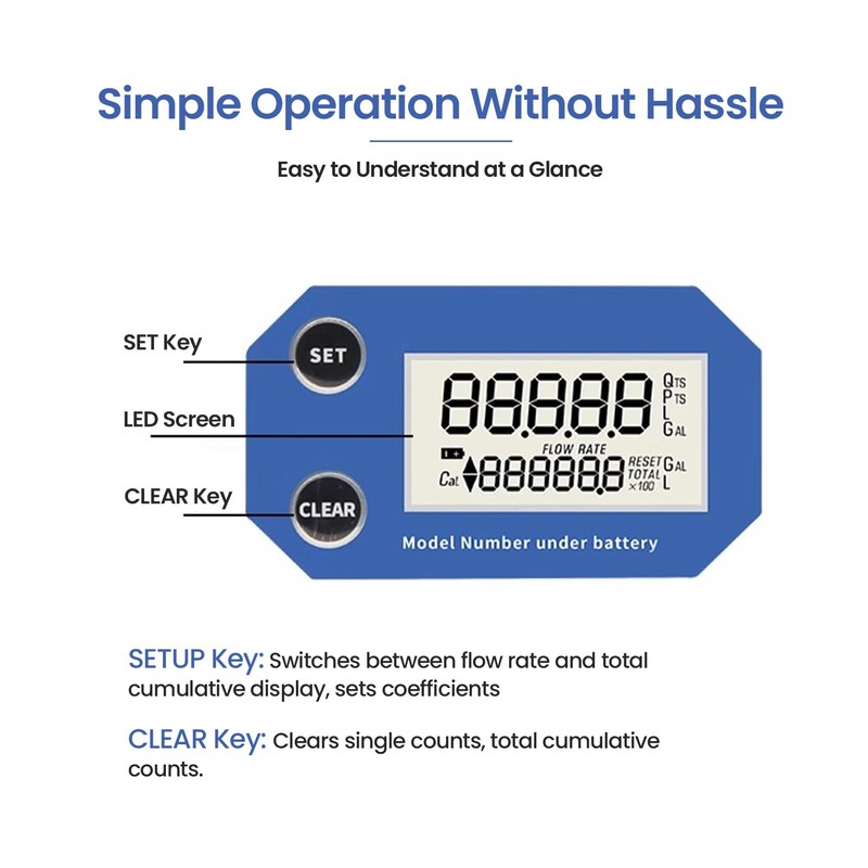 - [Alta precisión]: Con una alta precisión de medición de hasta ±2%, este caudalímetro con pantalla digital garantiza precisión en las lecturas.