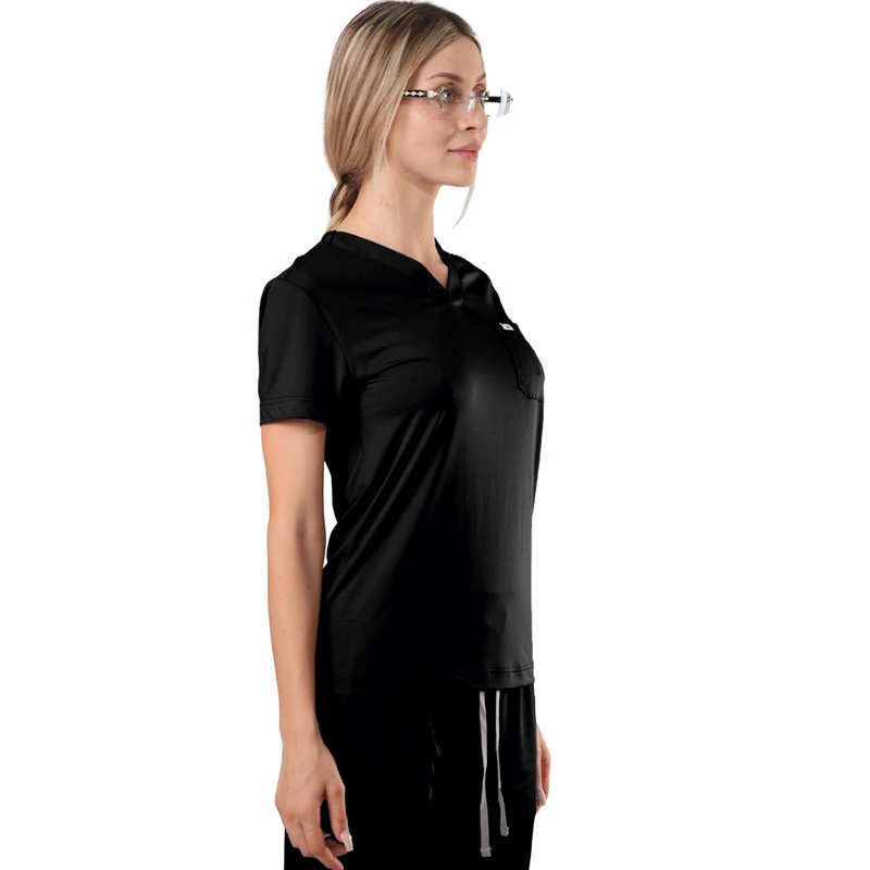 Mediero Scrub Tops for Medical Women, Soft Stretch V-Neck Scrub Top, Wrinkle-Resistant Fabric with Chest Pocket Black