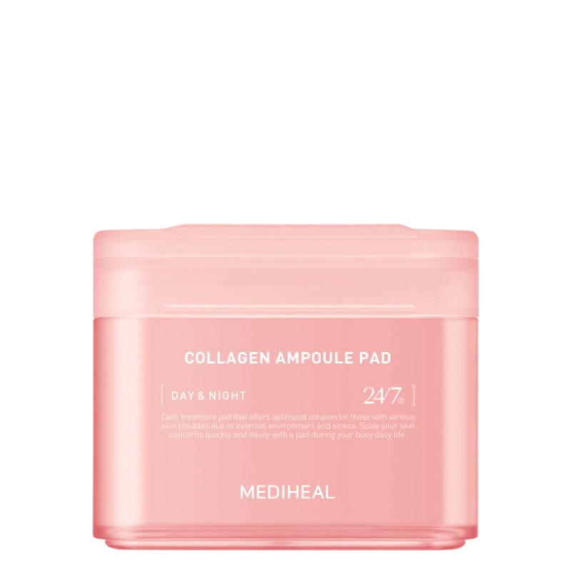 🌸 Mediheal Collagen Ampoule Pad contains Collagen, Ceramide, and Milk Protein. These active ingredients in our resurfacing pads for face help improve skin depression in multiple facial areas, including the eye area, cheeks, around smile lines, and forehead after use.