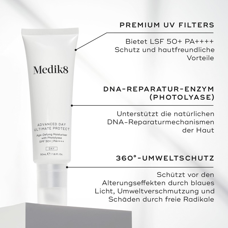 Medik8 Advance Day Ultimate Protect SPF 50+ Anti-Ageing Moisturising Cream with Sun Protection Factor SPF 50+ PA++++ - Moisturising & Non-Greasy UV Protection - 50 ml
