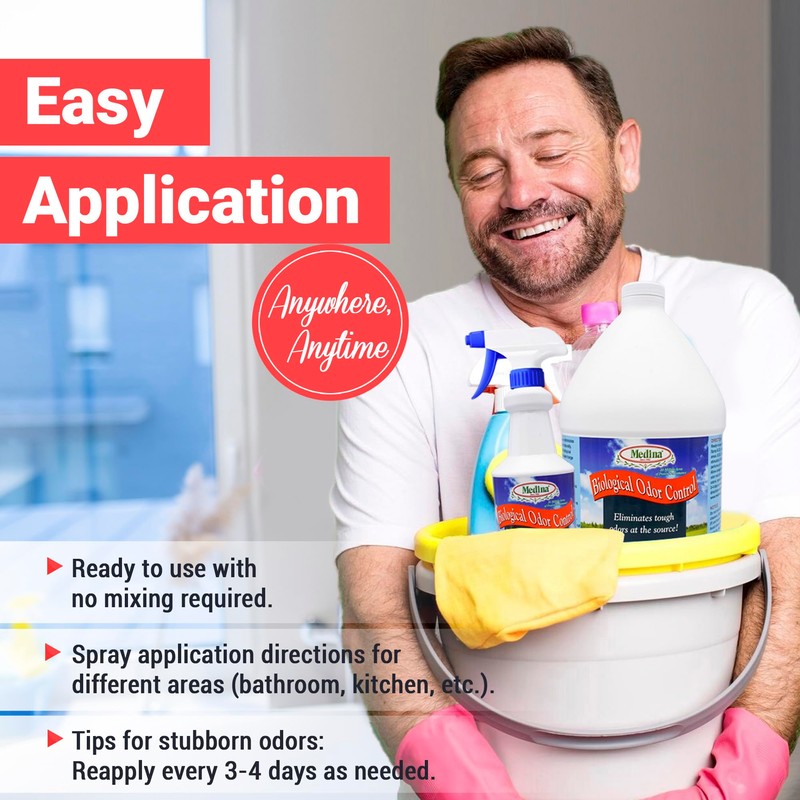 BOC (Biological Odor Control) Odors are caused when living organisms decay and rot, giving off gas and noxious fumes. The presence of odors usually means there is an imbalance in the natural decaying process. The best way to control odors is by controlling the microbial activity and balance. BOC quickly gets rid of odors by balancing the microbial activity and keeps the odors from returning. It contains safe biological activators that supercharge the naturally occurring biological reduction process. BOC changes foul smelling anaerobic decomposition conditions to odorless aerobic conditions. Use BOC to control or manage odors throughout the house including the bathroom, kitchen, closets, garage, pet areas, trash pails, fireplace, carpets, sinks, automobiles and anywhere else odor is a problem. Ready to use, no mixing required. Just spray BOC on and around odor areas. Allow adequate time for noticeable odor reduction to occur. For stubborn odors, repeat application every 3-4 days as needed.