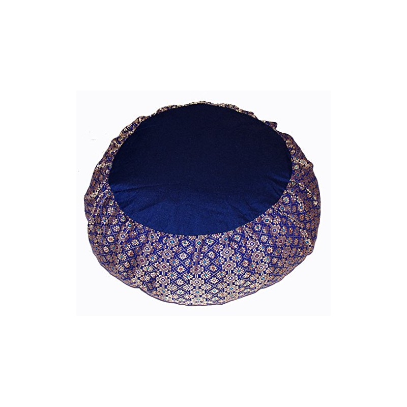 Meditation Cushion Zafu Pillow Buckwheat - Silk Brocade Blue