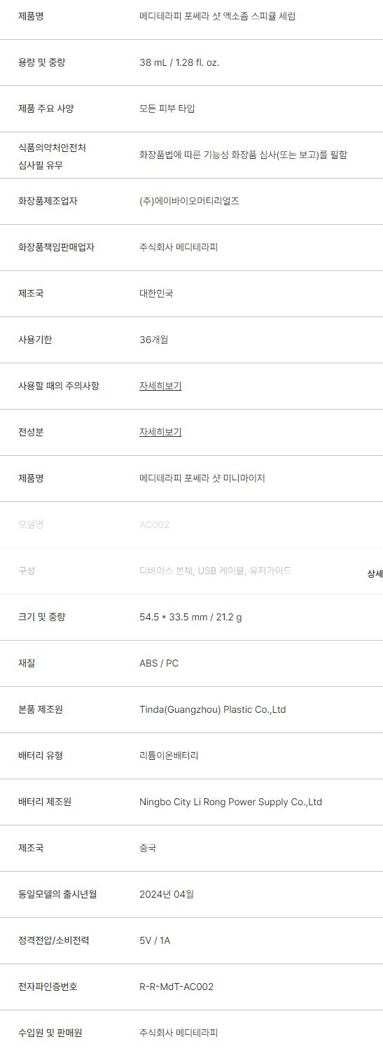 메디테라피 포쎄라 샷 엑소좀 스피큘 세럼 38ml 1개 미니마이저 모공 타이트닝 중주파 뷰티디바이스