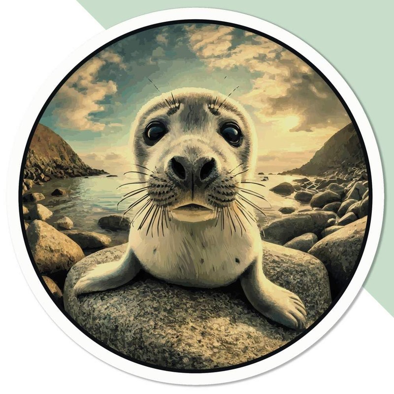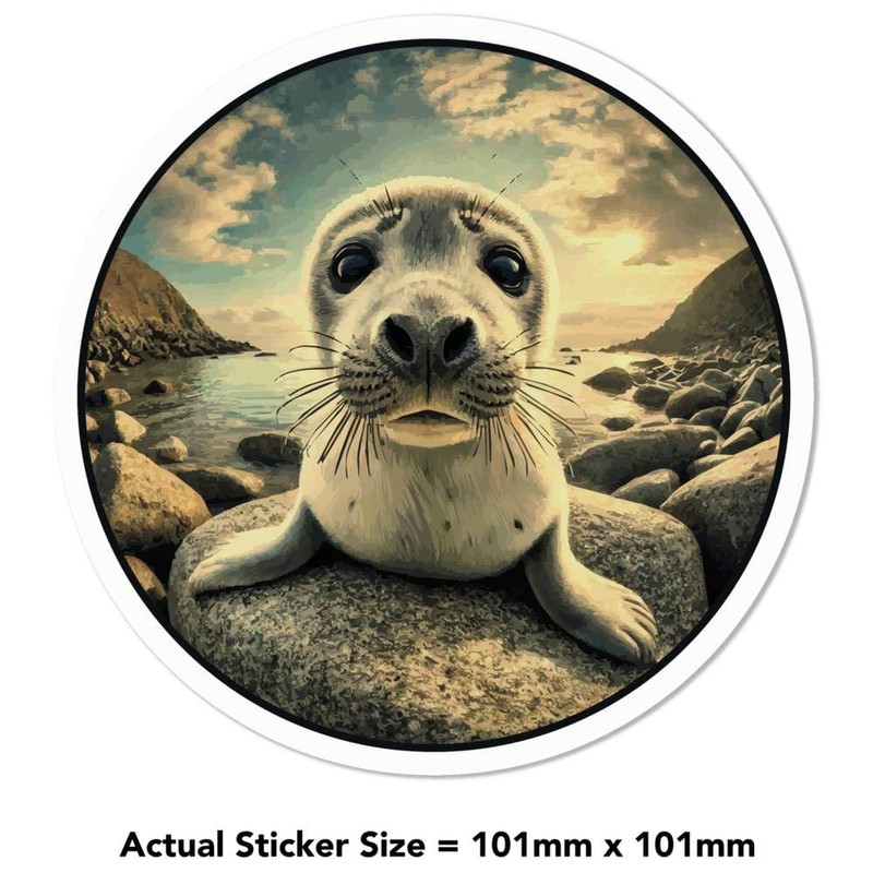 Medium 100mm 'Grey Seal Pup' Permanent Sticker Decal for Cars/Windows/Bins/Walls etc (DW00132013)