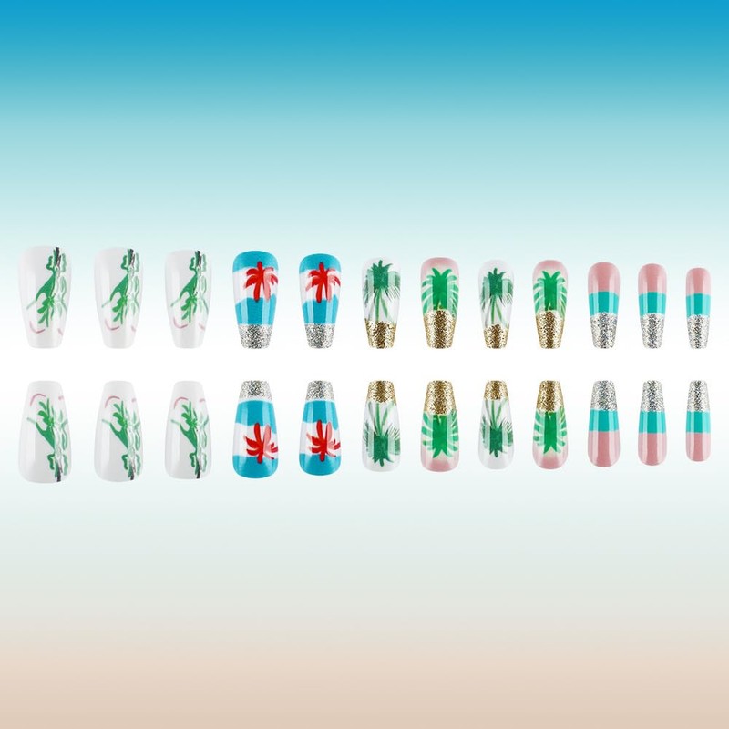 - Health and Durable:Our false nails with coconut tree design are made of healthy ABS material, no irritating smell, higher gloss, not easy to break. Tropical style fake nails will not harm the human body or natural nails upon removal, and can be used with confidence. People with sensitive nails are no exception