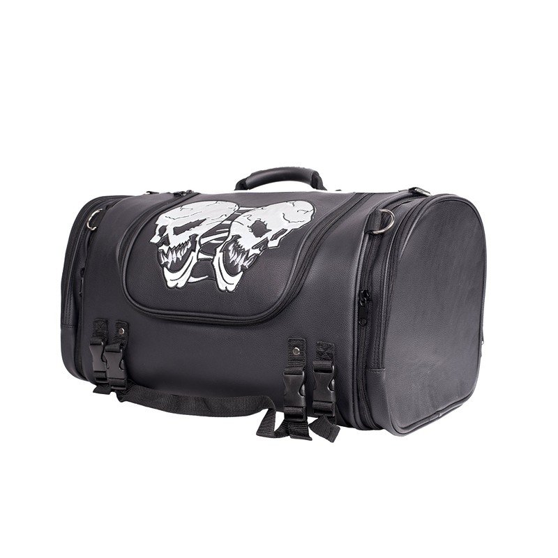 Medium Motorcycle Sissy Bar Bag with Reflective Skulls and Rain Cover