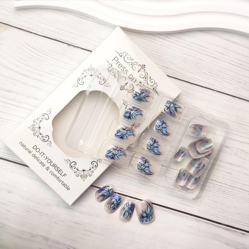 Item Type: Blue Flower Press on Nails