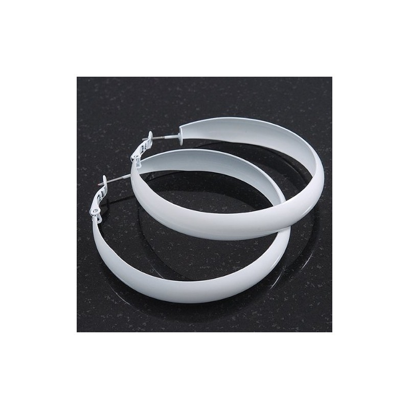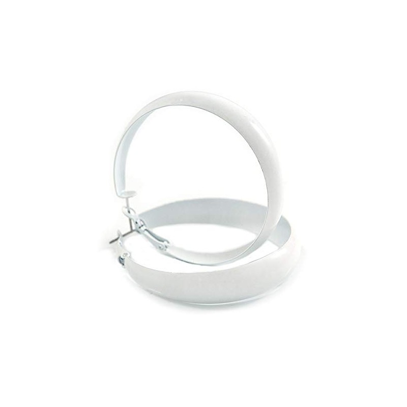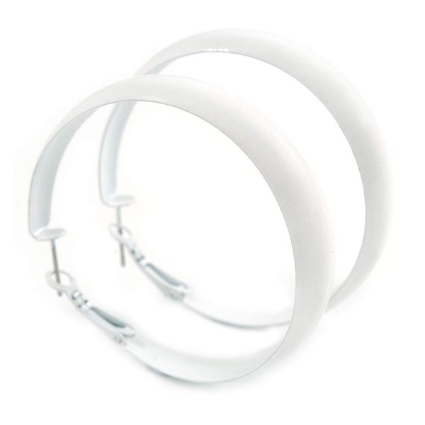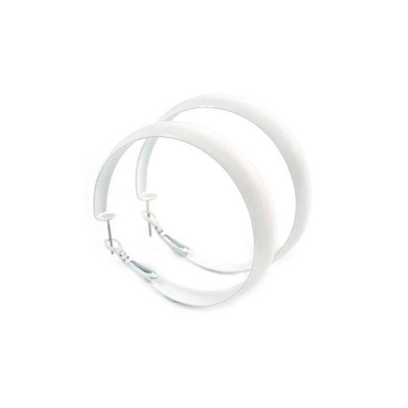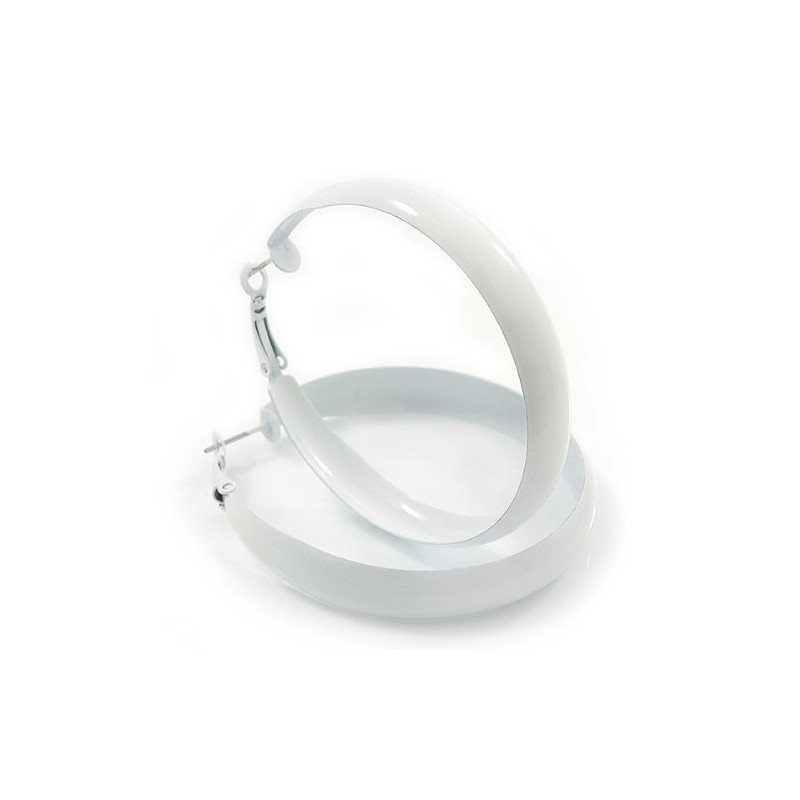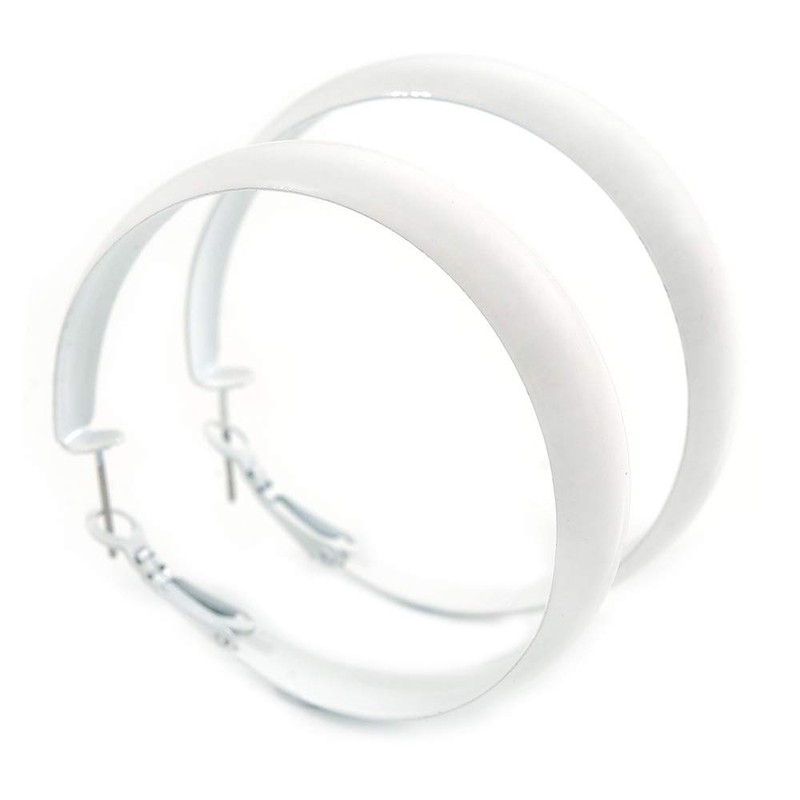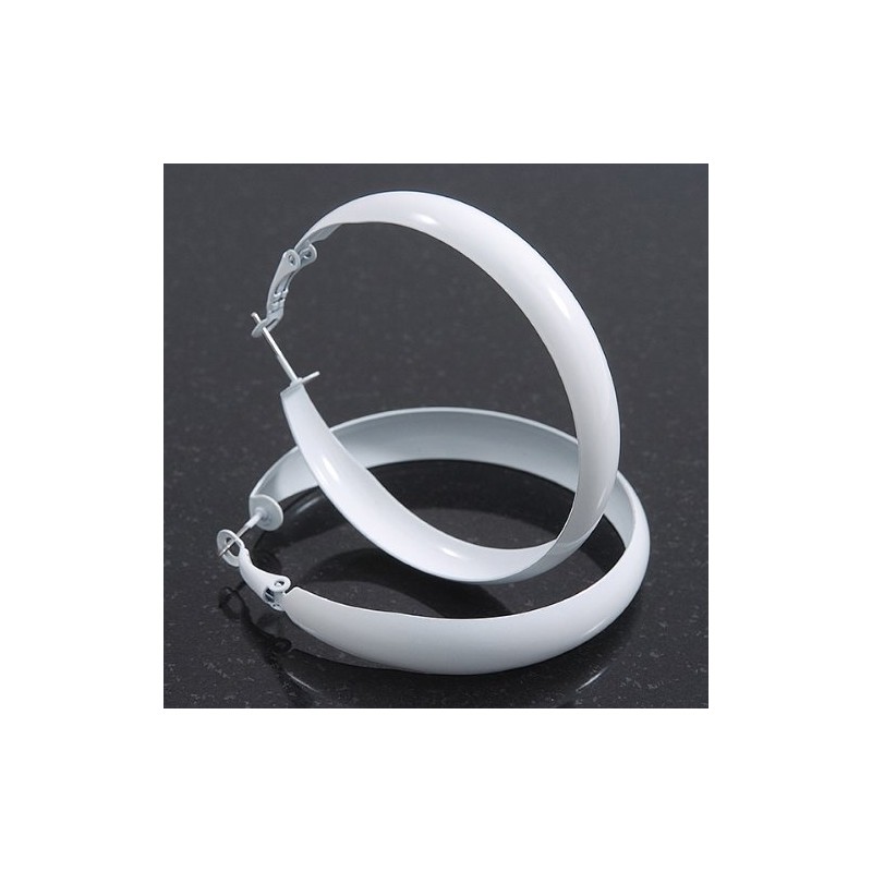 Medium White Enamel Hoop Earrings – 45mm Diameter – Classic & Chic Style
