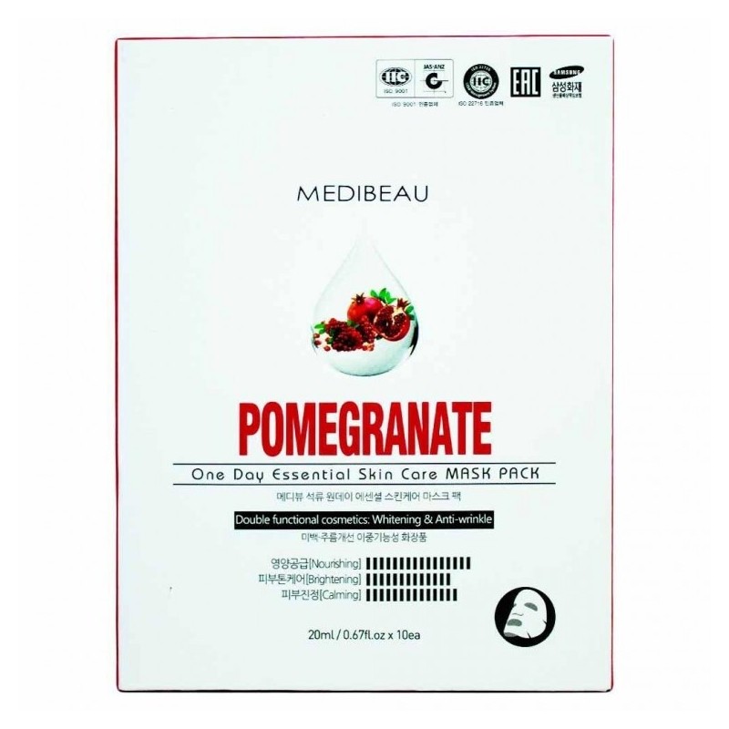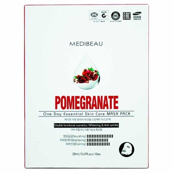 Mediview One-Day Essential Skincare Mask Pack 20ml - Pomegranate, 10 Sheets 7ea
